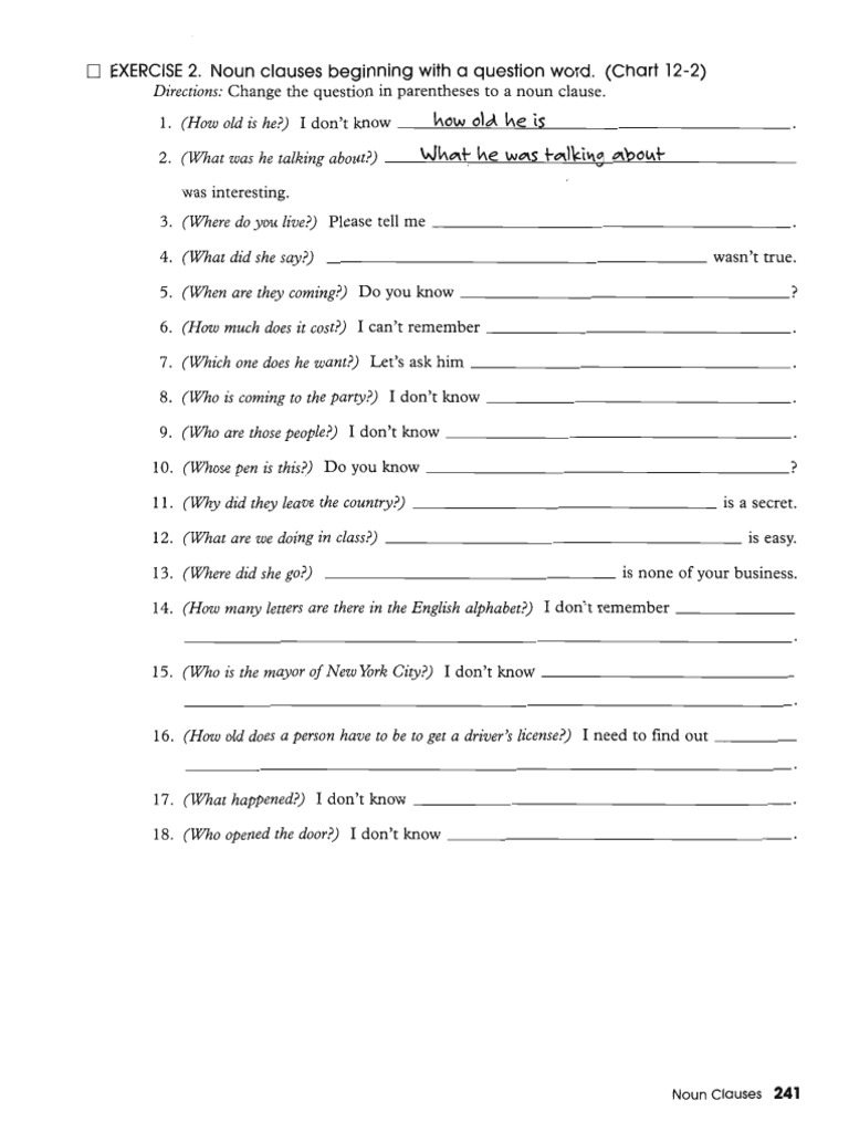 Noun clause examples with answers pdf.