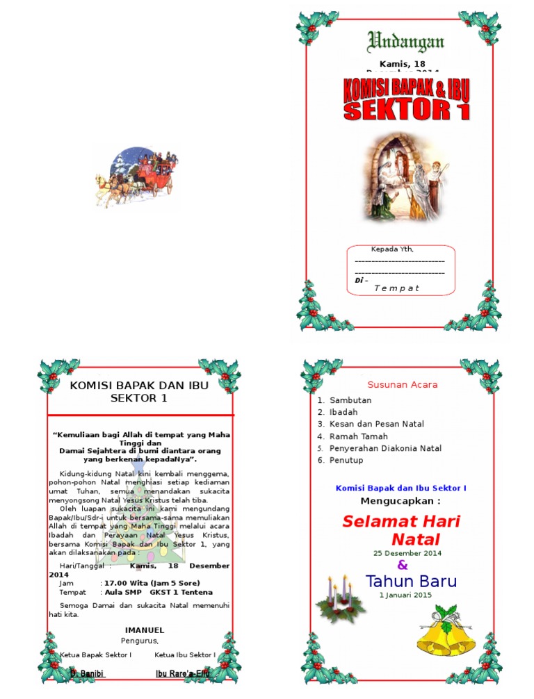 Undangan pesta hari natal word selebaran undangan pesta word undangan pernikahan (desain heart scroll, ukuran a7, 2 per halaman) word kartu pos undangan ulang tahun. Cukup segar memang kalau dilihat dan bisa menggambarkan suasana natal yang memang dekat dengan hiasan pohon cemara. Instaprint merupakan salah satu percetakan digital terbaik & berkualitas yang berpusat di tangerang. Susunan dalam surat yang memberitahukan adanya kegiatan atau acara pertemuan, agar penerima bisa hadir dalam tempat dan waktu yang sudah ditetapkan. Pesannya bisa tentang cinta, kalimat romantis, maupun kalimat inspiratif favorit pasangan agar menambah sentuhan personal pada undangan pernikahan.